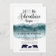 Let the adventure begin walking watercolor rustic bears baby shower invitation, with calligraphy script typography.
