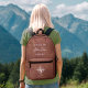 Personalised Adventure Begins Brown Leather Travel Backpack . Design features a white compass with a quote "And so the adventure begins" on a brown leather look print background. Personalise with your name. Makes an ideal gift for travellers, adventurers and anyone with a passion for exploring new destinations