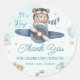 Adventure Cute Bear Blue Plane Boy Baby Shower Classic Round Sticker