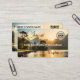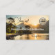 Business card featuring an image of a fantasy landscape at sunset. You can add your own logo, QR code and social media. All these are custom templates. The backgrounds on the right side of the back are individual shapes and can be resized and customised in the advanced editor. A beautiful business card for a travel agent.