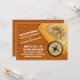 Adventure Wedding Invitation featuring an antique compass, a stegosaurus dinosaur skeleton information plate on a piece of paper and a wood look digital art background. This cool wedding invitation is perfect for an archaeology adventure or museum themed wedding. Easy to customise, simply add your wedding details. Click "Customise It" to find more personalisation options.