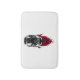 This rug is just as pictured! Vibrant Red and very soft material, nice to step in out of the tub! Matches my set of accessories and shower curtain! A must have to add some whimsy to your bathroom! Very nice, vibrant and clear print! Beautiful!
