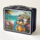 Adventurous Cute Little Turtle with Backpack, Metal Lunch Box