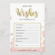 This modern floral "Advice and Wishes" bridal shower game features a pink floral background with golden glitter splashes. The text is written in a mix of a playful calligraphy font and a modern sans font, this Emoji Pictionary card is personalised with the Bride-to-be name and the Bridal Shower date.