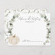 Add a personal touch to your baby shower with our Advice and Wishes Little Pumpkin Baby Shower Enclosure Card. This charming white pumpkin themed card is perfect for sharing advice and well-wishes for the new parents, all while adding a touch of enchanting eucalyptus greenery. Get inspired and make your baby shower unforgettable!