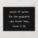 Create your own funny graduation words of advice card for your graduation party celebration. Ask guests to write words of advice for your favourite grad. Black and white design. "Words of advice for the graduate who thinks they know it all". Wonderful graduation keepsake memory card.