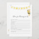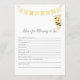 A fun game for the baby shower is the Advice for mummy-to-be game. This game features a yellow banner at top and a teddy bear with a bee. On the reverse is a boy teddy bear leaning on a honey barrel watching a honey bee with templates.