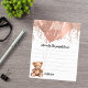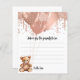 For a Baby Shower. A stylish white background. Decorated with rose gold, drips, paint dripping look, party streamers, balloons and a cute teddy bear.