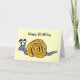 Hilarious cartoon snail birthday card says happy birthday on the outside and inside is another snail with a slime trail behind and says Rush out and Celebrate. Cute and fun.
