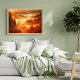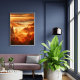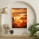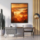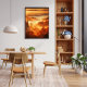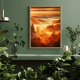 "Embark on a journey through the vast expanse of nature with our Aerial Jungle Landscape Poster. This mesmerising artwork offers a bird's-eye view of a lush jungle, stretching as far as the eye can see, adorned with a multitude of majestic red trees. In the distance, towering mountains rise majestically, adding to the grandeur of the scene. What truly captivates is the breathtaking cloud formation resembling a sea of clouds, painted in a unique combination of yellow and red hues. This surreal vista is a testament to the unparalleled beauty of the natural world, inviting you to immerse yourself in its splendour."