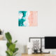 The design features turquoise waves gently meeting soft pink sand, creating a soothing balance of color and texture that instantly elevates any modern space.