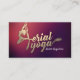 Elegant Aerial Yoga Studio Meditation Pilates Fitness Instructor Business Card Template - Elegant Gold Aerial Yoga Pose and Handwritten Script Typography on Burgundy Red Purple Texture Background.