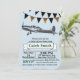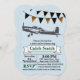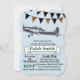 A stylish Aeroplane themed boy baby shower invite. Perfect for an aviation baby shower theme. Design features a light blue background, a vintage aeroplane and bunting banner in black and gold.