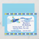 This customisable high flying aeroplane birthday party invite features an aeroplane pulling a banner through the sky.