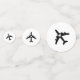 Romantic travel theme oversized table confetti perfect for a destination wedding or travel theme bridal shower, engagement party or reception celebration features a faux gold jet plane with a heart in the centre on a black and white background.