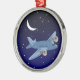 Aeroplane flying at night with moon & stars. Pilot Metal Tree Decoration