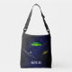Aeroplane, flying saucers & galaxy background Crossbody Bag.