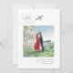 A trendy destination wedding photo save the date with a custom aeroplane heart trail monogram, square photo template, and modern minimal typography perfect for a special wedding location anywhere in the world, has space on the back for custom text and website details. Travel theme save the dates are a fun way to let guests know your wedding date and location early enough to start planning their trip so you can share your favourite location and epic adventure with them. Be sure to mail wedding date announcement cards for a wedding abroad as soon as you know the travel plans for maximum guest attendance.