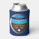 Blue can cooler printed front and back with an aeroplane cockpit attitude flight instrument, with a customisable text strup on top to add your name or message. the perfect gift for aeroplane and helicopter pilots and aviation enthusiasts
