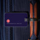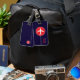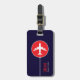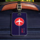 An elegant item with the graphic image of a white aeroplane in a red circle, on navy blue (custom colour) background personalised with your name and initials... to identify your belongings.