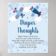 This adorable Diaper Thoughts Game is a great way to kick off the fun at your Baby Shower & guaranteed to be a huge hit! Simply display this cute sign along with a stack of diapers and Sharpie markers. Each guest will write a message on the diaper, it can be something funny or words of advice for the parents to read while they change baby's diaper. The design features colourful aeroplanes and clouds with faux silver glitter stars.