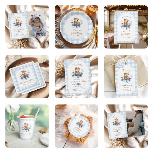 Aeroplane Teddy Bear Blue Boy Baby Shower Photo Invitation