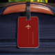 The front side of the tag features a simple and graphic image of a cream plane soaring against the dark red background, capturing the spirit of adventure and wanderlust. To make it uniquely yours, we offer customisation options with your initials and full name elegantly displayed in a timeless serif font. This personal touch not only adds a distinctive flair to your luggage but also makes it easy to identify in a sea of bags.