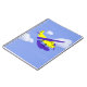 Notebook with a whimsical yellow and blue aeroplane flying in the cloudy sky, created with construction paper and manipulated in Photoshop by KLeighE of Hinterland Harmony’s Whimsical Cartoon Art ™