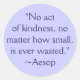 "No act of kindness, no matter how small, is ever wasted." ~Aesop