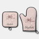 Aesthetic coquette pink bow Personalised Name Oven Mitt & Pot Holder Set