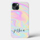Stylish Aesthetic Holographic Elegant Script Signature iPhone Case. Personalise this cute aesthetic design with your name.