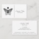 An elegant simple aesthetician business card featuring a beautiful illustrated butterfly and flowing script type as a simple black and white business card. List your own services on the back of the card with other contact information. The butterfly symbolises transformation; a perfect symbolic design element for an aesthetician.
