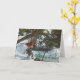 Beautiful red cardinal sitting on a birdbath in the snow thinking of you card.