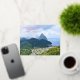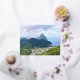 The lovely city of Soufriere, St. Lucia with the world famous Pitons in the background on an Adventures for Anyone Postcard.