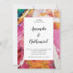 Affair of the Heart Wedding Invitation and associated wedding correspondence and favour products design is derived from a vibrant original flowing contemporary abstract painting in pinks, red, orange, ivory and blues.