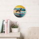 Afghan Hound Beach Surfing Painting Large Clock