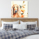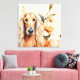 This beautiful canvas wall art is created in watercolors and is a lovely portrait of an Afghan Hound dog sitting against lovely peach colored lilies flowers, making it a great way to brighten any room.