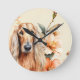 A beautiful watercolor portrait of an Afghan Hound dog sitting against lovely peach colored lilies flowers on this lovely wall clock, perfect for brightening any room.