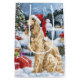 This festive design captures the joyful spirit of the holiday season, featuring an adorable pup wearing a Santa hat. The cat is nestled in a winter wonderland, complete with a snowman, a decorated Christmas tree, and beautifully wrapped presents. Snowflakes gently fall, adding a magical touch to the scene, while the vibrant colours of the holiday decorations create a warm and cheerful atmosphere.