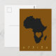 Celebrate your African connection with this postcard featuring a bold black map of the continent, centered with a heart. Warm brown tones and vibrant yellow "AFRICA" lettering evoke pride and unity. Ideal for gifting, journaling, or advocacy, this minimalist design honors heritage with emotional depth.