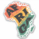 Colourful grunge Africa map in red, yellow and green colours with black "Africa" text design and native ethnic shapes decoration