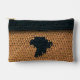 Africa Map Black and Brown Artisan Crochet Print Accessory Pouch