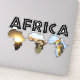 Custom made stickers of African Wildlife are the perfect, easy way to show your love of Wildlife. Or perhaps it is for a friend, this will make it simpler for them to put onto their favourite personal accessory or stationery. Part of our African Wildlife Continent collection, we feature the african continent with photos of wildlife such as giraffes, zebras, elephants, rhinos, buffaloes and more with the word "Africa" in a traditional font in black in this version.