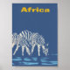 Africa Zebras Drinking Water Vintage Travel Poster