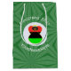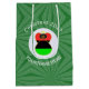 Medium gift bag features the angel wearing the flag of the African Diaspora for holiday gift decorating or Christmas decor. The African American Flag Christmas angel is found inside a white circular fractal of squiggly squares. The background is a green fractal of squiggly squares. Add your own text or personalise with a name and the year. Can be lovely for Kwanzaa, too.