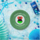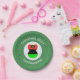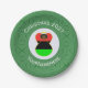 Paper party plates show an angel wearing the flag of the African Diaspora for holiday party decorating or Christmas decor. The African American Flag Christmas angel is found inside a white, fractal circle of squiggly squares. The background is green fractal squiggly squares. Add your own text or personalise with a name and the year. Can be used for Kwanzaa, too.