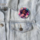 Pretty personalised girl's birthday girl button. Cute graphics of a beautiful African-American anime girl with pretty pink flowers in her cute curly hair. These are cute for a teen or pre-teen girl. Colours are pink, purple, blue and yellow.