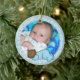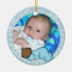 Baby's 1st Christmas customisable keepsake ornament with a sleeping baby boy in a blue sleeper and soft snowflake design. You can easily customise this ornament with baby's photo and add your own text to the back. It's great as a 1st Christmas gift and will be a memento for years to come.
