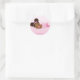 This sticker is in pastel pink and white colours. The sticker is designed with cute, African American baby girl. Baby mermaid is with two buns, pink fishtail and starfish headband.