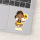This cute afro baby girl sticker is in yellow, brown and green colours. The sticker is designed with cute, African American baby girl with ponytails holding sunflower. You also can personalise the name.